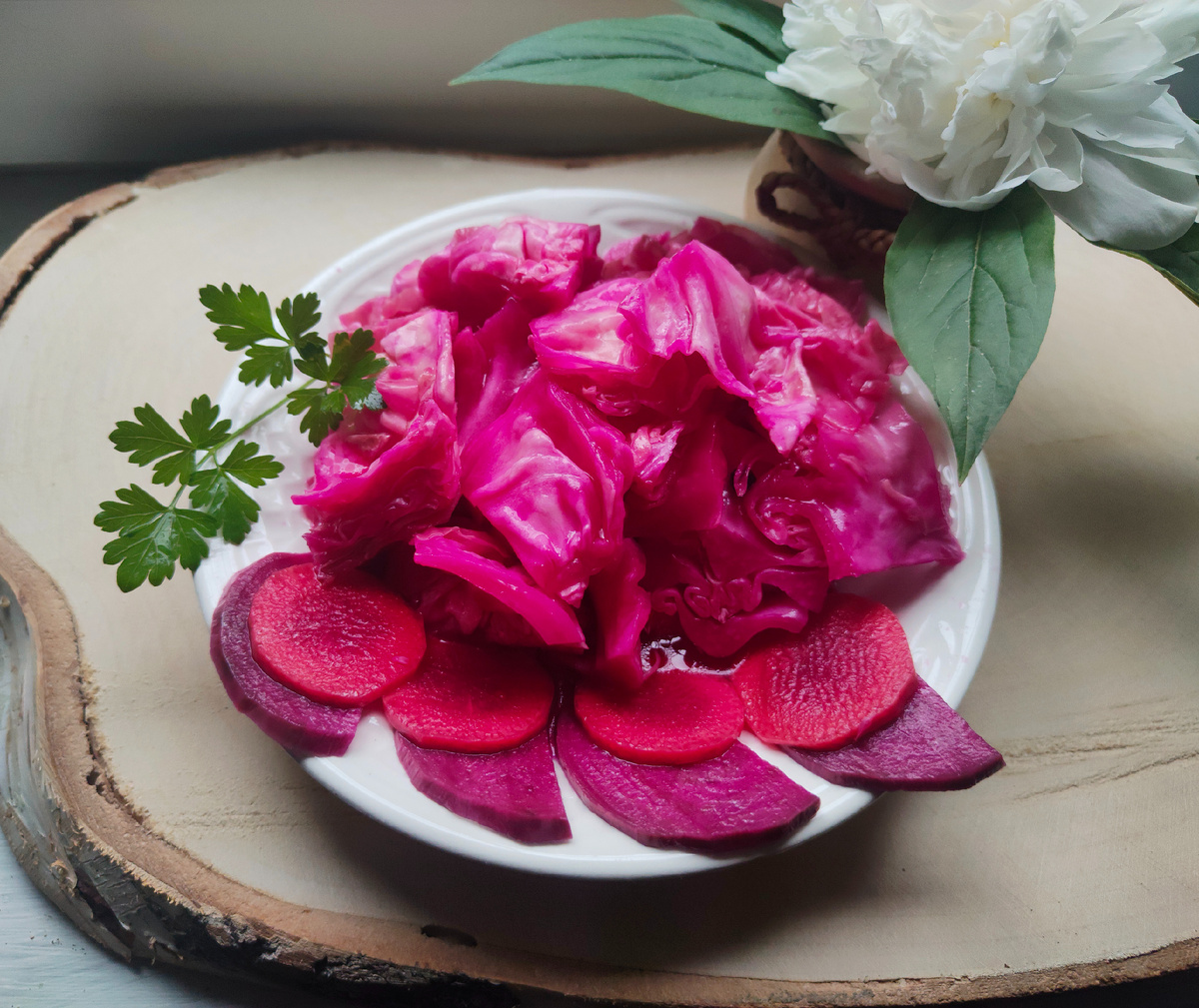 Эта универсальная закуска станет настоящим хитом как на обеденном столе, так и на праздничном угощении. Хрустящая капуста, дополненная морковкой и свеклой, безусловно, понравится не только вегетарианцам, но и всем, кто ценит яркие вкусы.