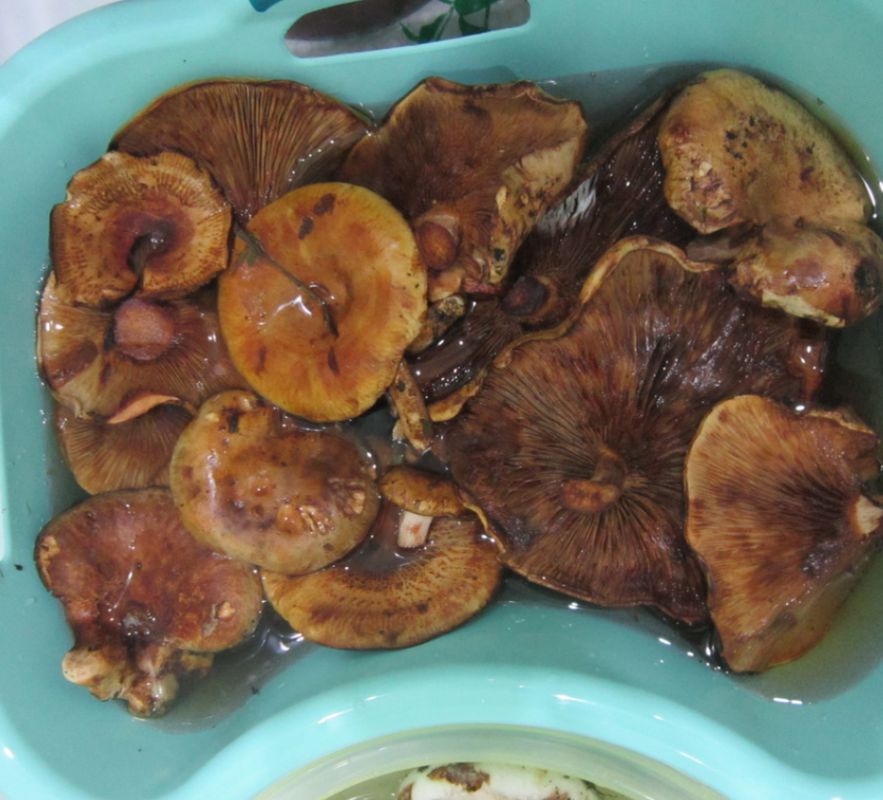 - Положить свинушки в тазик.