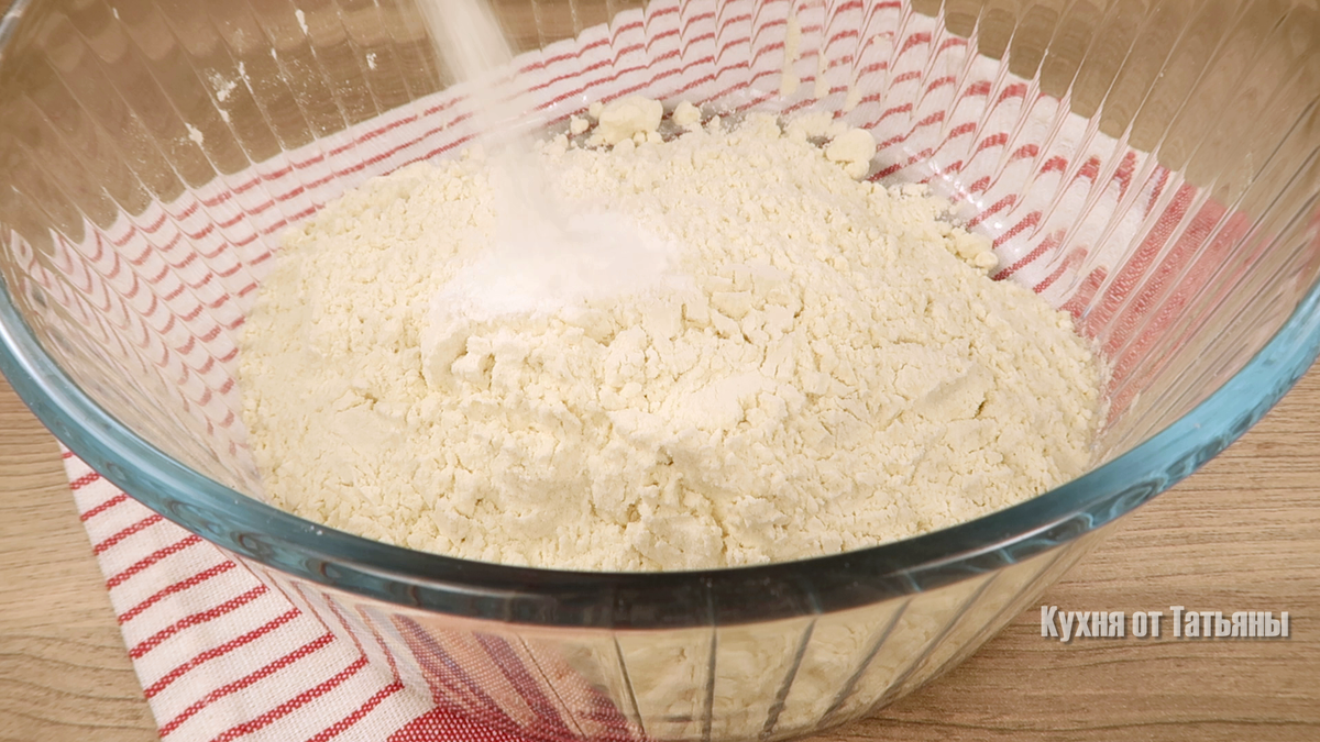 - Подготовка теста: Просеять муку и добавить разрыхлитель. В отдельной миске смешать яйца с щепоткой соли, ванильным и обычным сахаром. Взбить все до однородной массы с помощью миксера.