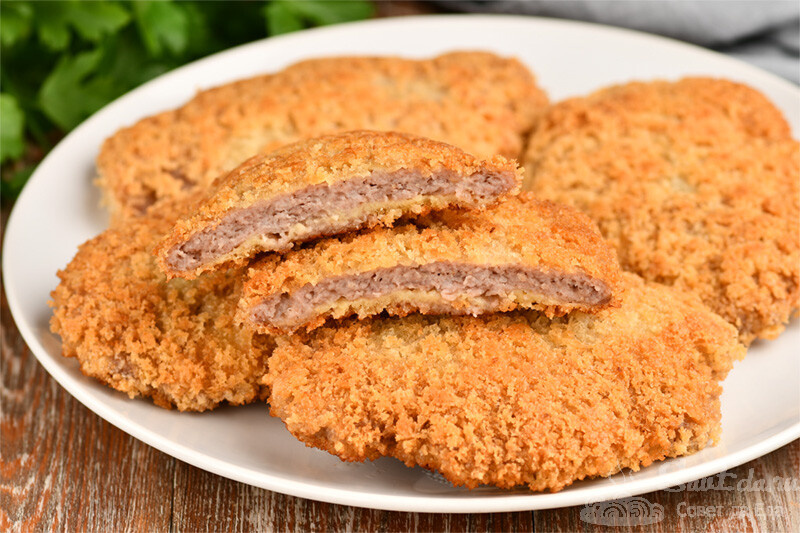 Эти отбивные порадуют хрустящей корочкой и натуральным мясным вкусом. Измельчите 140 г хлеба в крошку и смешайте с 500 г фарша (свинина + говядина), добавив соль и перец. Сформируйте лепешки, обваляйте в муке с крахмалом, затем окуните в яйца и обваляйте в хлебных крошках. Жарьте на медленном огне по 5 минут с каждой стороны.
