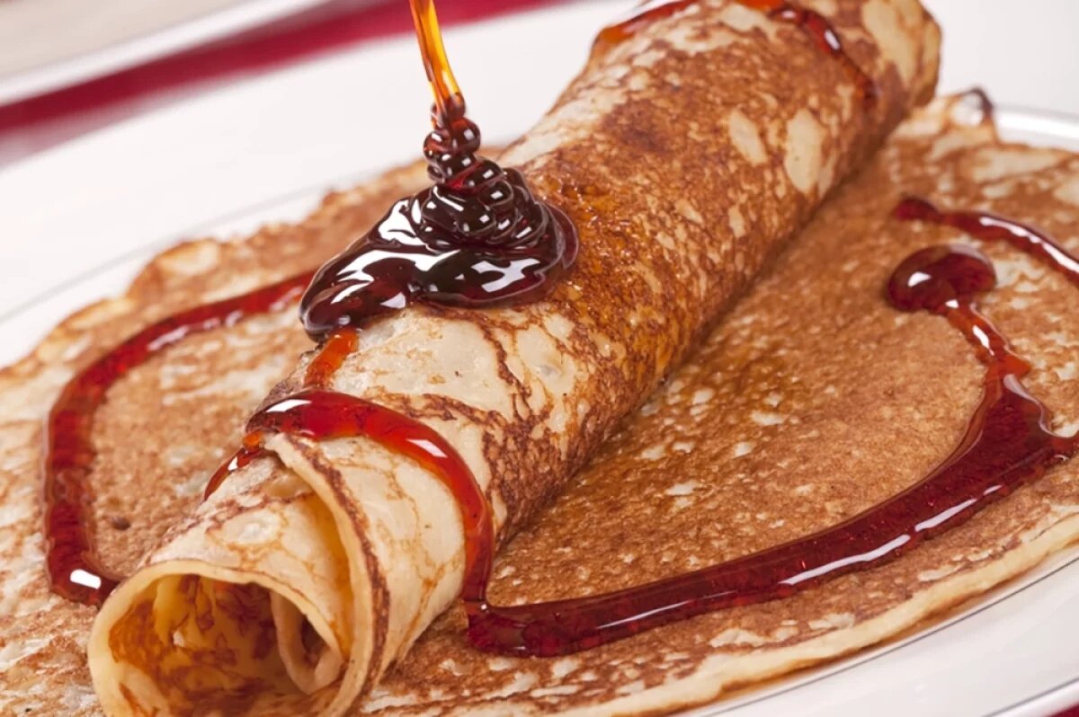 - Блины креп сюзетт: Тонкие, почти прозрачные блины обжариваются на сливочном масле и пропитываются апельсиновым соусом с карамелью, создавая уникальное сочетание сладости и горечи цитрусовых.