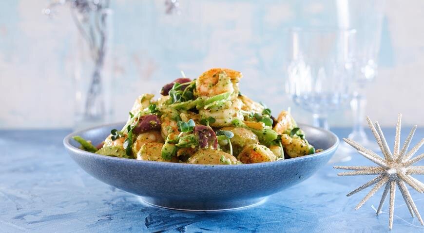 Этот оригинальный картофельный салат с пряной заправкой станет настоящей находкой на любом столе. Для разнообразия можно добавить в него нейтральный по вкусу авокадо, и он преобразится в уникальное фирменное блюдо, которое безусловно вызовет восхищение гостей.