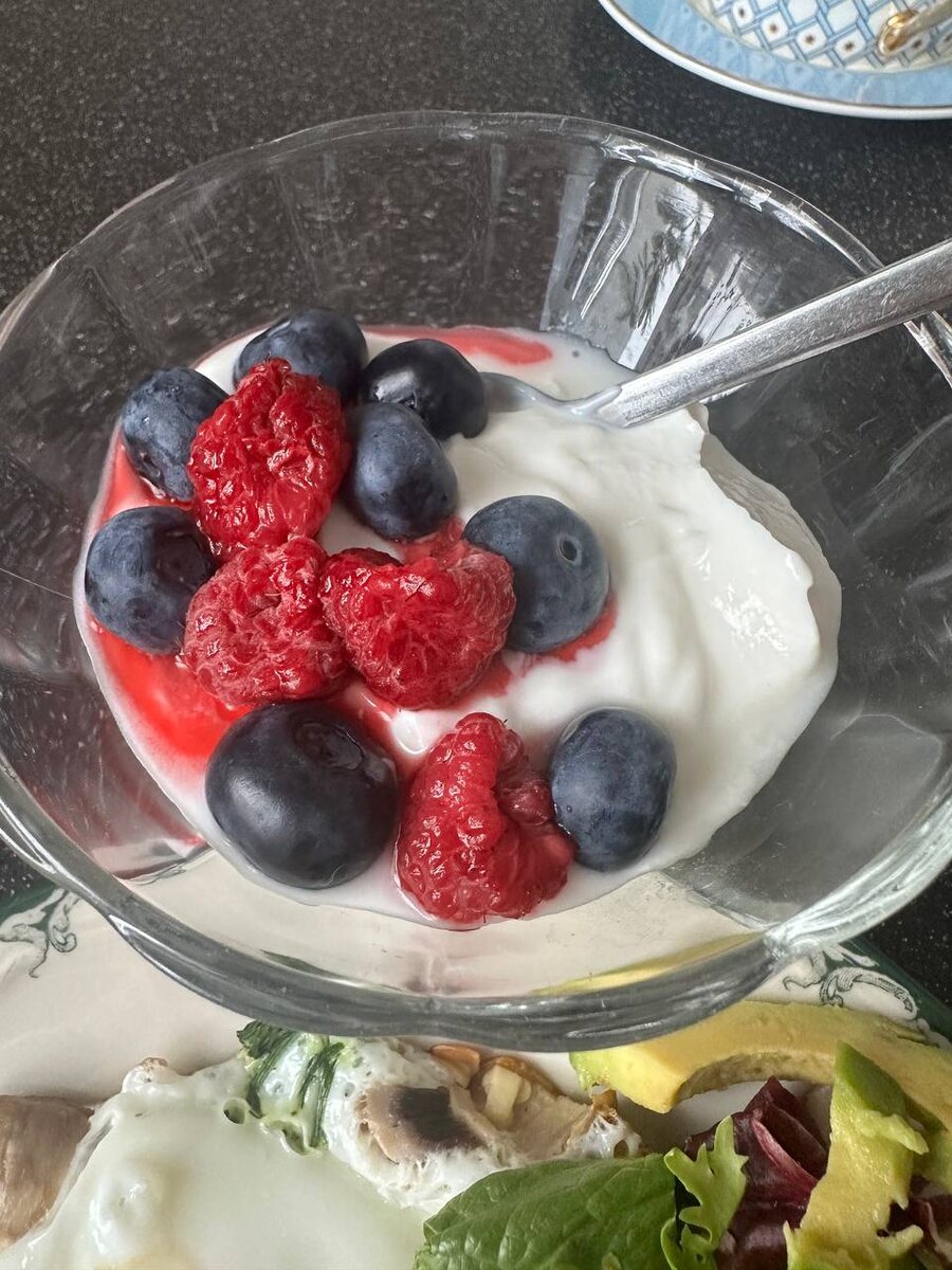 - Йогурт с ягодами – свежие фрукты добавляют ярких красок и натуральной сладости.
