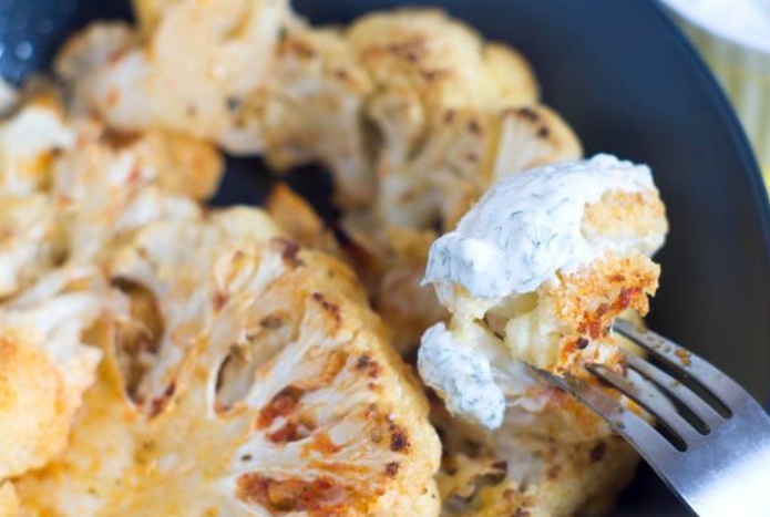 Готовые «стейки» из цветной капусты подавайте с ароматным соусом. Это блюдо — отличный способ разнообразить повседневное меню, уверенно покоряя сердца ваших близких.