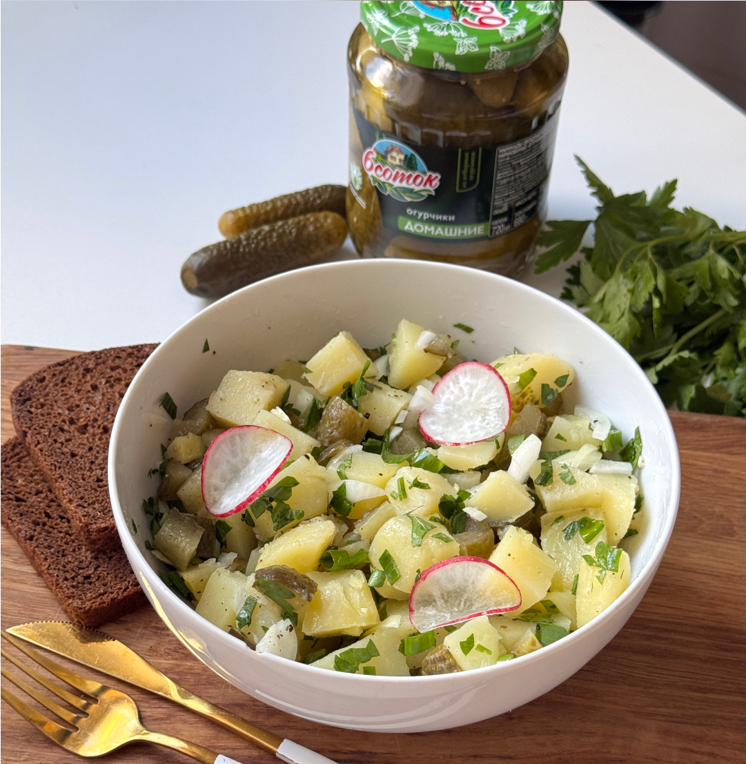 В ритме современных дней иногда так хочется насладиться простым, сытным и по-настоящему домашним блюдом. Этот картофельный салат с солеными огурцами — отличный вариант для таких моментов. Он может служить как идеальным гарниром, так и ярким самостоятельным блюдом, которое приятно удивит и заготовит воспоминания о детстве.