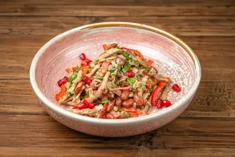 Благодаря мелкой нарезке и насыщенному соусу, все компоненты становятся единым целым, создавая гармоничное грузинское многоголосие. Рецепт от шеф-повара Иракли Челидзе уже давно стал хитом среди гурманов.