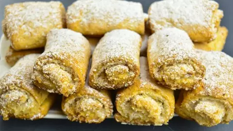 8. Готовые трубочки посыпать сахарной пудрой перед подачей.