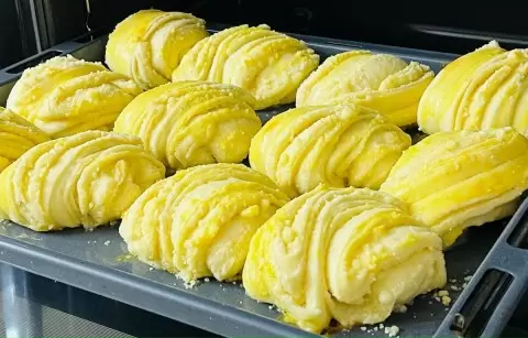 Перенесите сформованные изделия на противень, смазав их желтком, и поместите в разогретую до 180 градусов духовку. Выпекайте 20-25 минут до золотистой корочки. Готовую выпечку можно подавать к чаю — она будет сметаться с тарелки мгновенно!