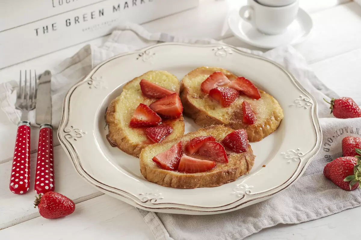 Румяные гренки со свежей клубникой