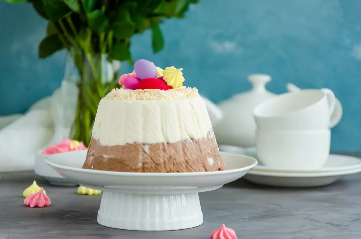 Пасха без сырых яиц — это оригинальное блюдо для праздничного стола, которое выделяется своим необычным внешним видом и простотой приготовления. Этот десерт не требует выпечки и подходит даже для начинающих хозяек. Основу лакомства составляют два слоя — светлый и коричневый, последний из которых готовится с добавлением темного шоколада. При укладке массы в форму можно поиграть со слоями, придавая блюду интересный вид.
