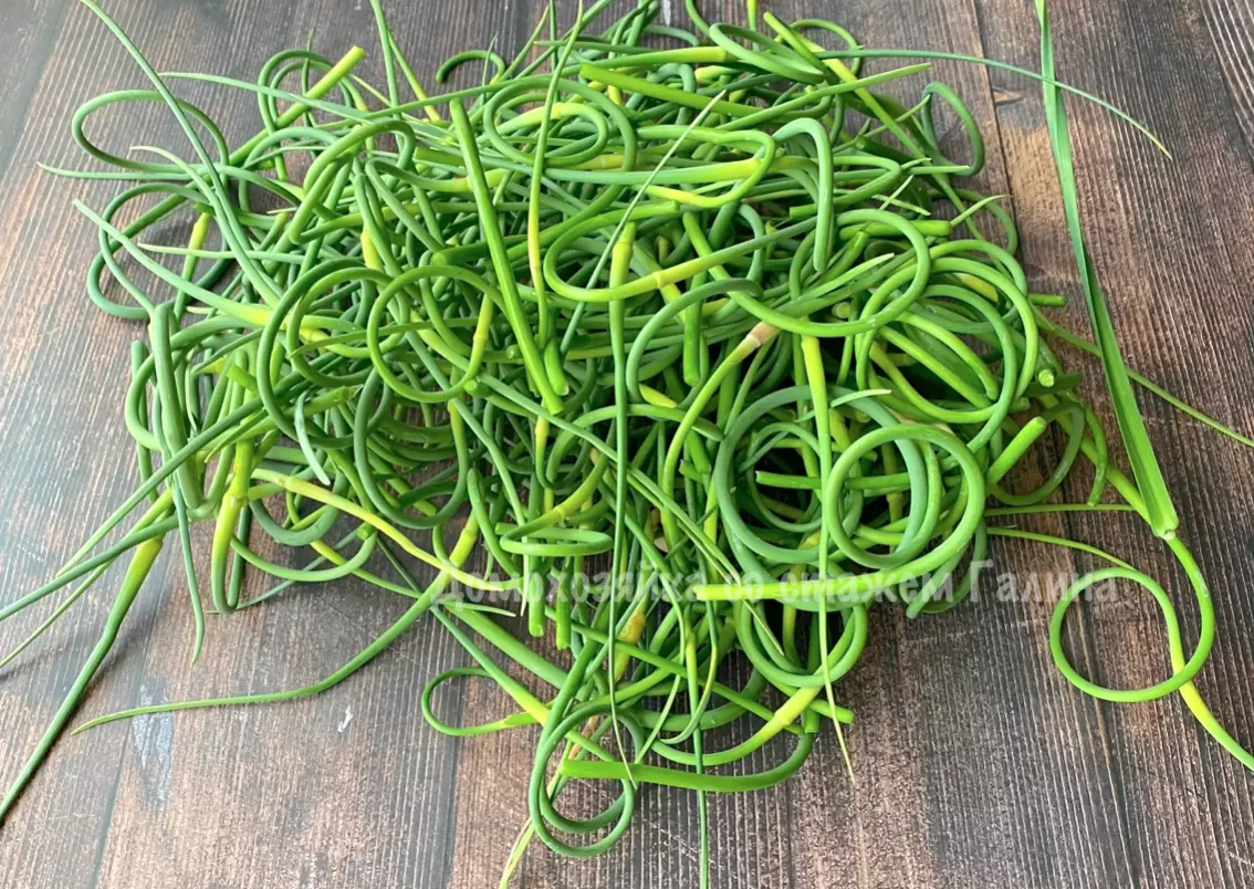 Первый шаг заключается в сборе бутончиков чесночных стрелок. Их можно использовать для кулинарных целей, однако многие выбирают удалить их, чтобы сосредоточиться на стеблях. Важно убирать стрелки до того, как бутоны раскроются — так они останутся сочными и нежными. Раскрытые букеты уже становятся жесткими и непригодными для потребления.