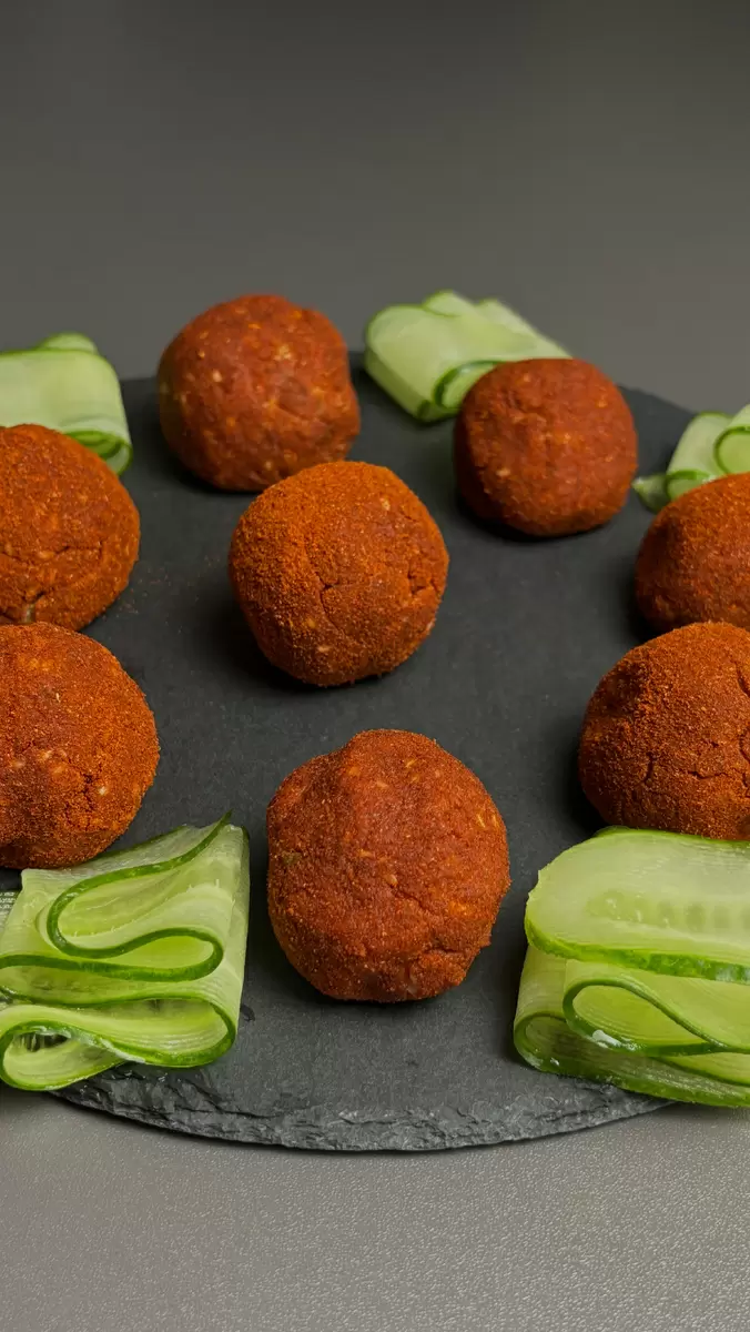 Шаг 3: Смешайте филе форели, чечевицу, кунжут и мяту. Скатайте из этой массы небольшие шарики и обваляйте их в паприке.