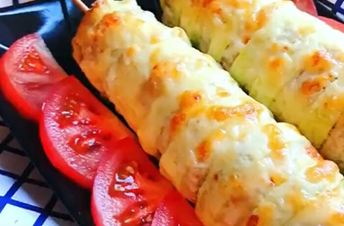 Можно готовить на гриле, в духовке или на сковороде. Главное — тщательно следить за временем, чтобы кабачки были мягкими, а фарш прожаренным. Подавайте шашлычки с соусом из сметаны и чеснока для пикантности.