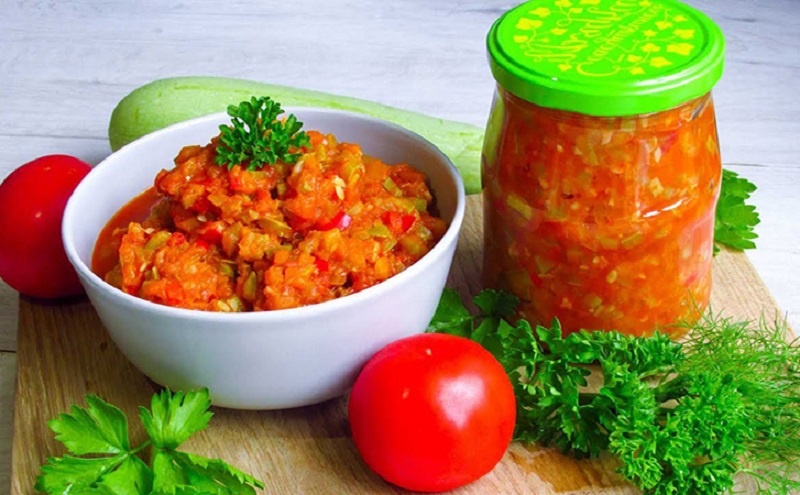 Этот вариант идеально подойдет тем, кто любит закуски с ярко выраженной текстурой. Кусочки кабачков, перца и помидоров удивительно гармонируют, а чеснок добавляет пикантности. Благодаря такому подходу зимой кабачки будут напоминать о лете — сочные и насыщенные.