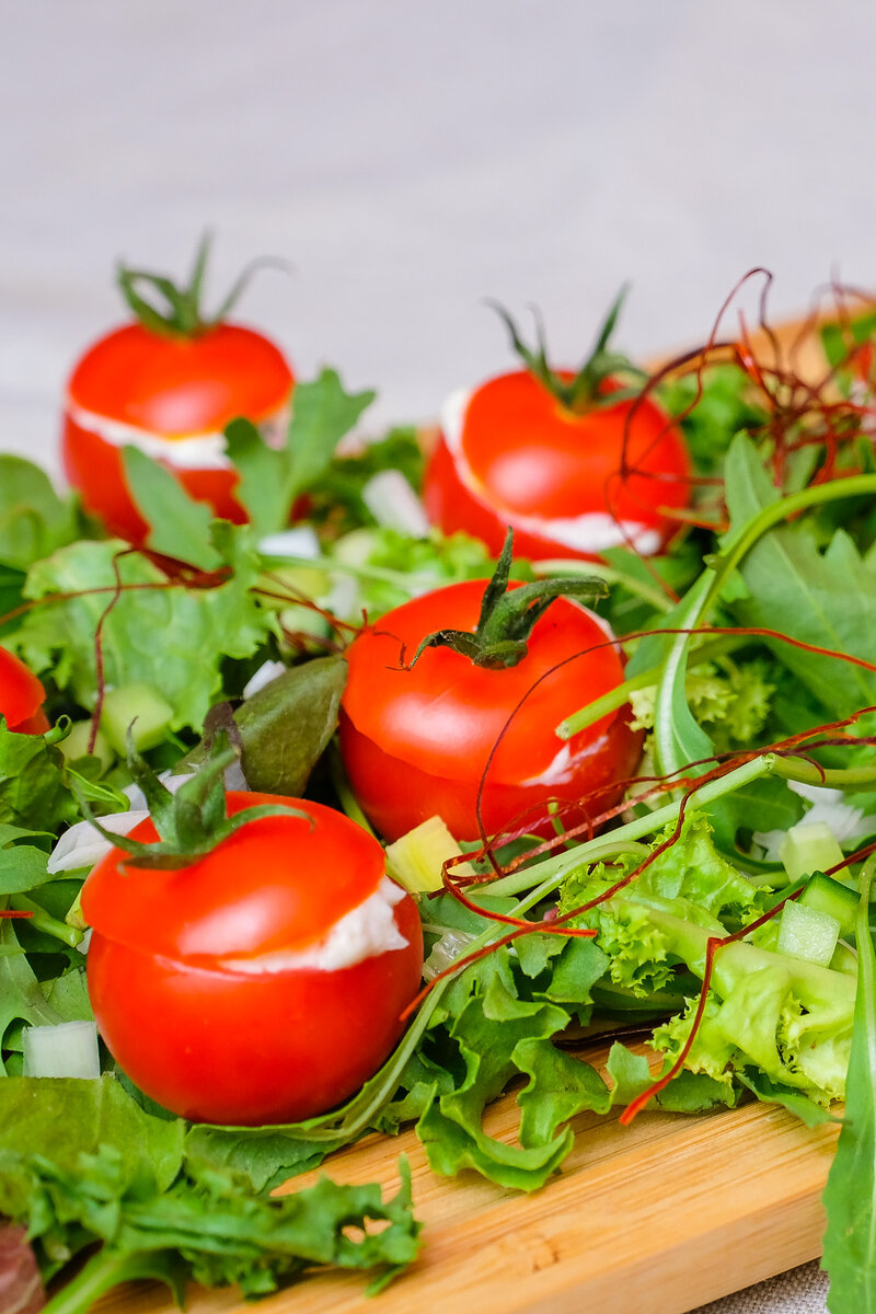 Приближается волшебный сезон, и время готовить праздничные закуски. Одним из самых ярких блюд на праздничном столе могут стать мини-томаты, фаршированные печенью трески и свежими овощами. Это не только вкусно, но и крайне просто в приготовлении.