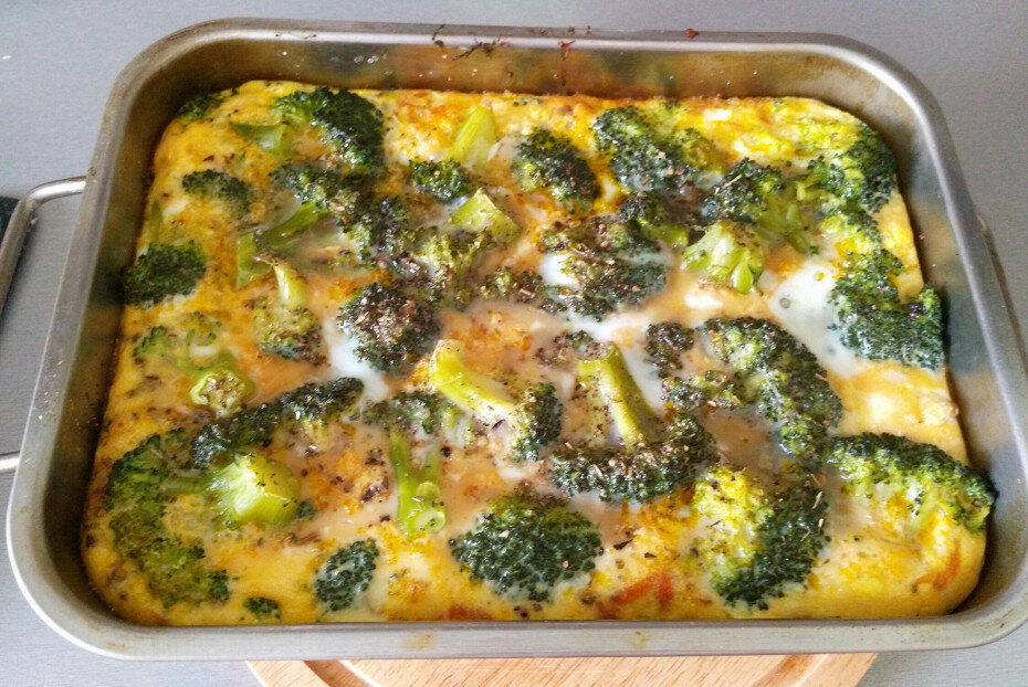 Подготовить брокколи: тщательно промыть и разделить на соцветия, чтобы они быстрее приготовились.Очистить морковь и лук. Морковь натереть на крупной терке, а лук нарезать мелкими кубиками.Вскипятить подсоленную воду и опустить туда брокколи. Варить 3–5 минут, пока она не станет яркой и слегка хрустящей.Параллельно на сковороде нагреть оливковое масло и обжарить лук с морковью до прозрачности.Выложить смесь лука и моркови в огнеупорную форму, сверху разместить соцветия брокколи. Приправить солью, перцем и добавить травы для аромата.Взбить яйца и равномерно залить ими овощную смесь.Разогреть духовку до 200 градусов, поставить форму с брокколи и запекать примерно 15 минут до появления золотистой корочки.Это блюдо станет отличным вариантом ужина или завтрака, полным витаминов и невероятного вкуса. Запеченная брокколи с яйцами и травами — это не просто еда, это настоящая кулинарная находка, которая разнообразит вашу меню и приятно удивит гостей!
