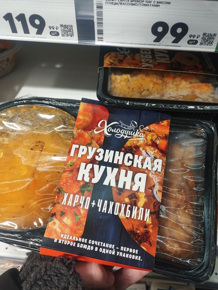 Если говорить о новых предложениях, то бренд «Холодушка» порадовал выбором готовых обедов, объединяющих популярные блюда из разных кухонь. Грузинское меню включает суп харчо и чахохбили, а узбекское — лагман и плов. Это хорошая возможность порадовать себя качественной едой без необходимости готовить.