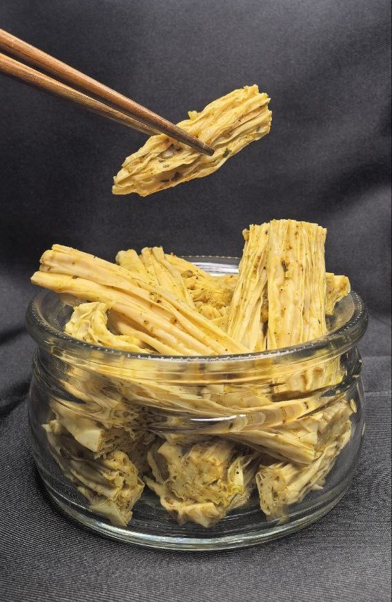 Процесс приготовления начинается с замачивания фучжу в холодной воде на 4-8 часов (или на 2 часа в теплой, но не кипящей водичке). После этого палочки стоит нарезать и подготовить заправку. Масло разогревается, добавляются специи — и вот, чудо готово. Оставьте настояться на несколько часов для более насыщенного вкуса.