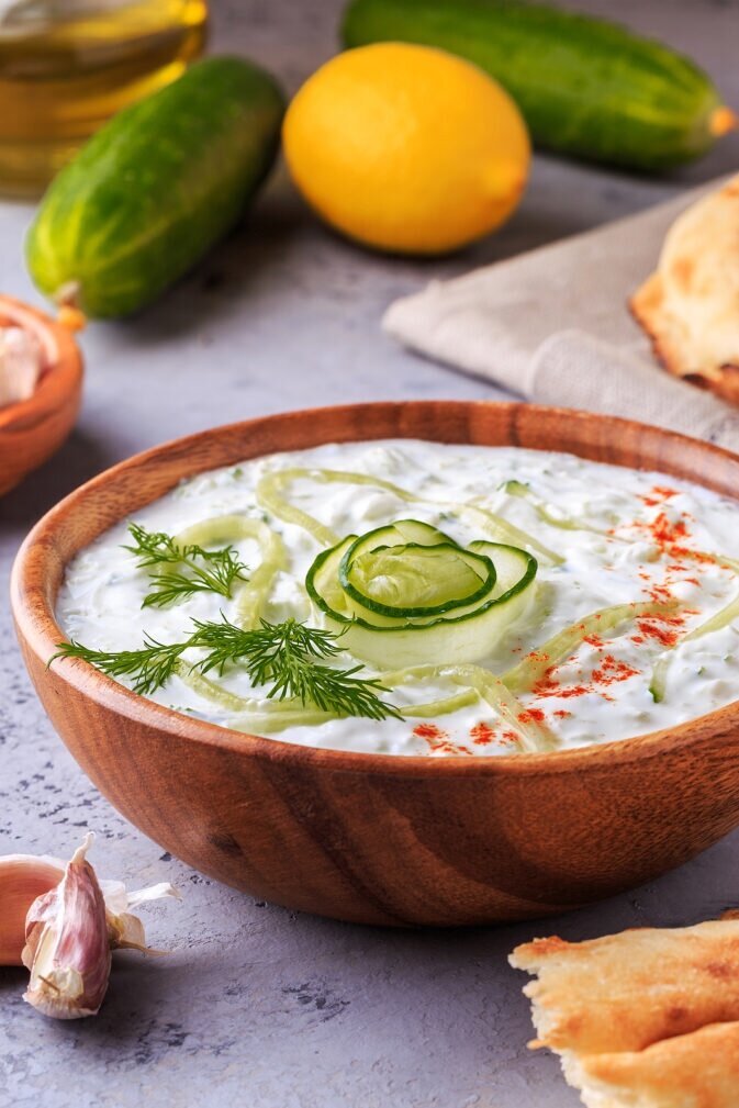 Цацики — это традиционный греческий соус, который искусно сочетает в себе свежесть огурцов и кремовую текстуру йогурта. Он идеально подходит как для мясных, так и для овощных блюд, сообщает Дзен-канал "Рецепты на каждый день".