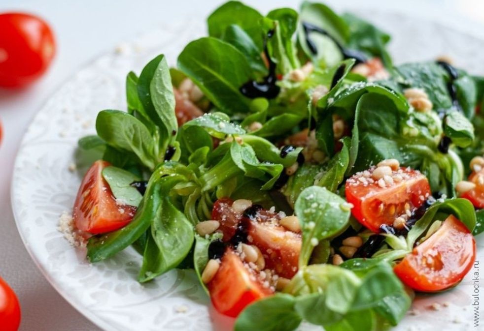 Салат из шпината с помидорами и тыквенными семечками
