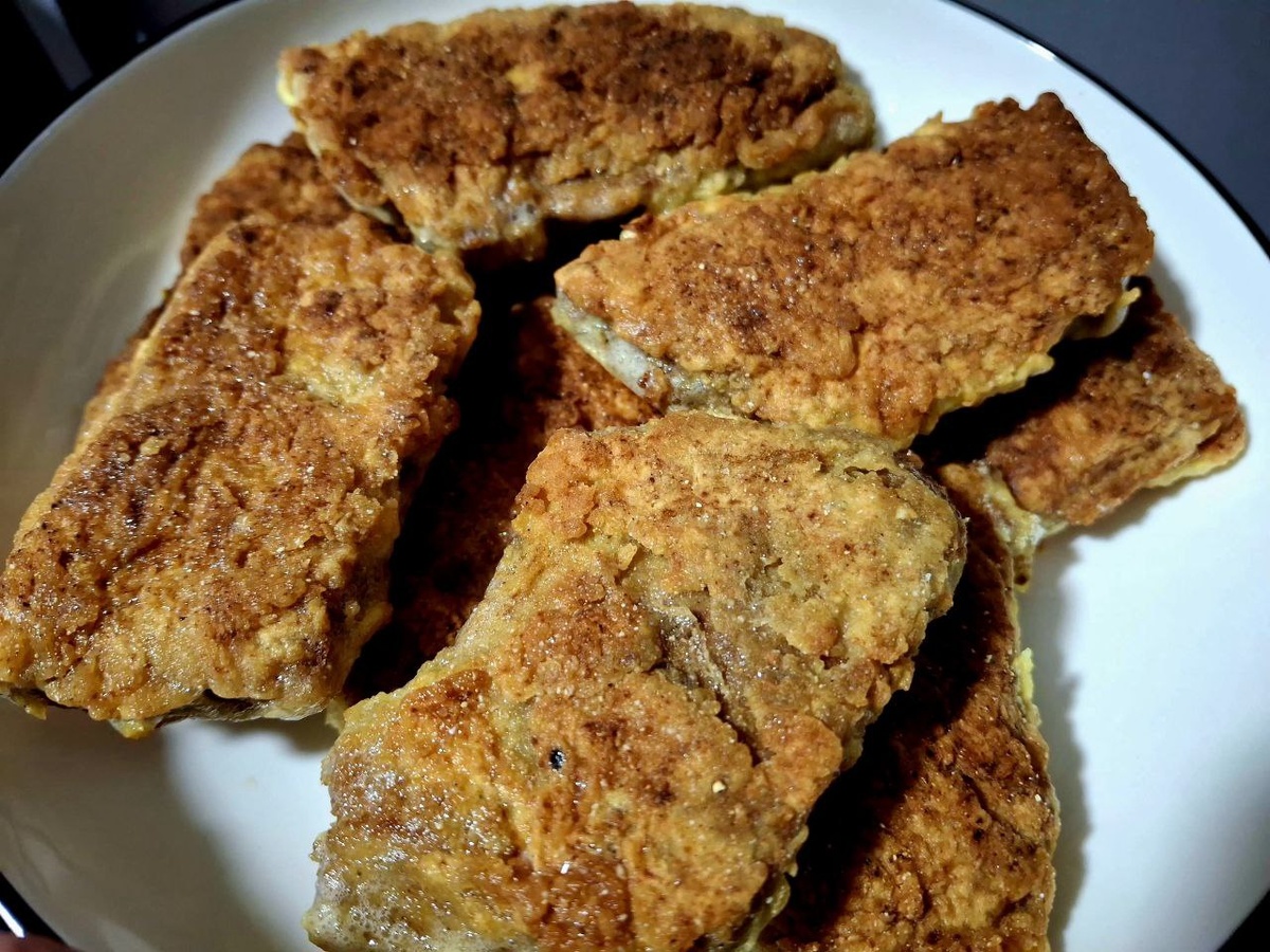 Когда вымя промаринуется, начните жарку. Каждую пластину сначала обваляйте в муке, затем окуните в взбитое яйцо и обсыпьте панировкой. Разогрейте в сковороде достаточное количество растительного масла и обжаривайте медальоны до достижения аппетитной золотистой корочки.