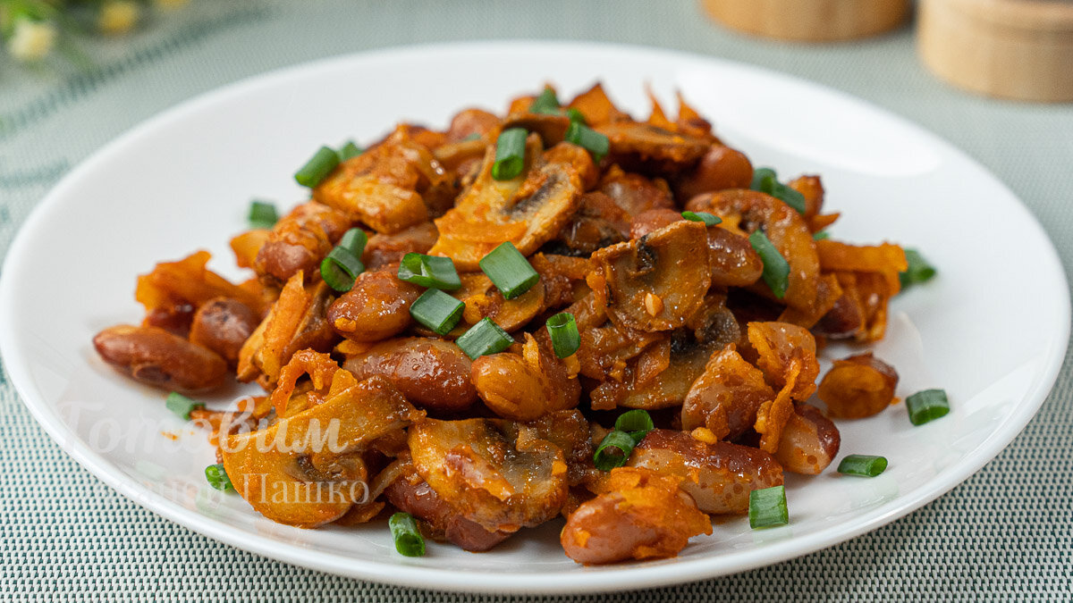 Не потребуется мясо, чтобы насладиться полноценным ужином! Несмотря на его овощную природу, фасоль с грибами отлично насытит и станет прекрасным вариантом для тех, кто постится или следит за своим питанием. Оно богато витаминами, питательными веществами и белком. Обязательно попробуйте добавить это простое, сытное и невероятно вкусное блюдо в свое ежедневное меню.