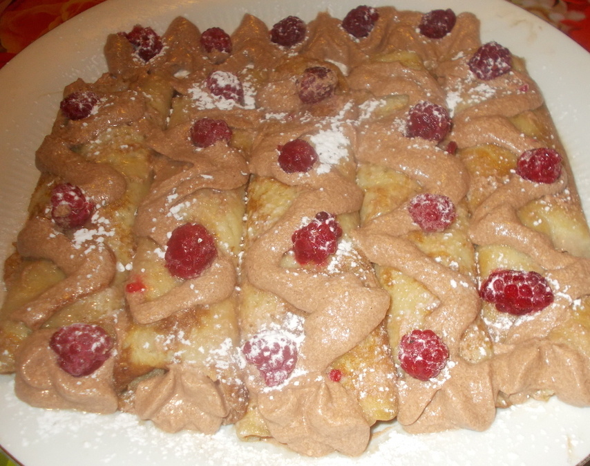 При подаче на стол блины можно складывать с кремом, украсив сверху оставшимися ягодами малины и посыпав сахарной пудрой. Такие блины станут настоящим украшением любого стола и подарят приятные мгновения за обедом или ужином.