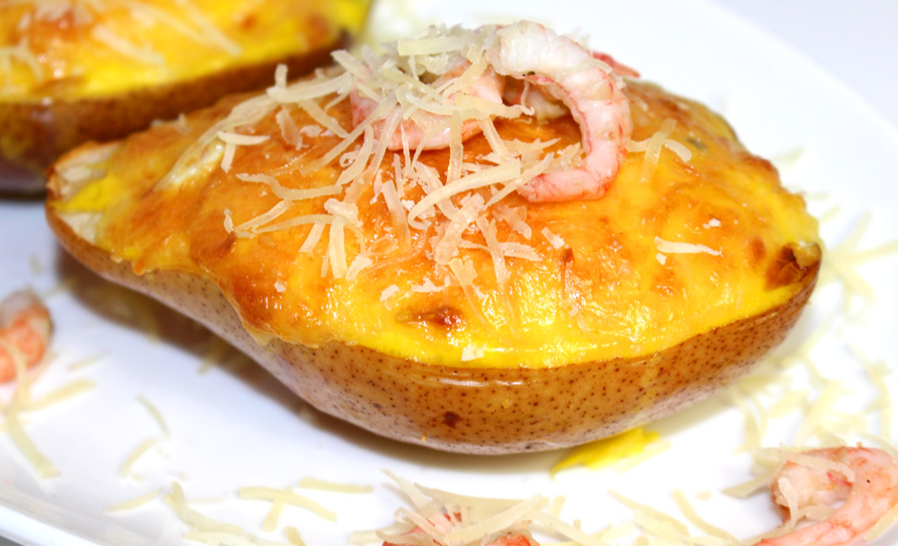 Как приготовить запечённую грушу с креветками и сыром