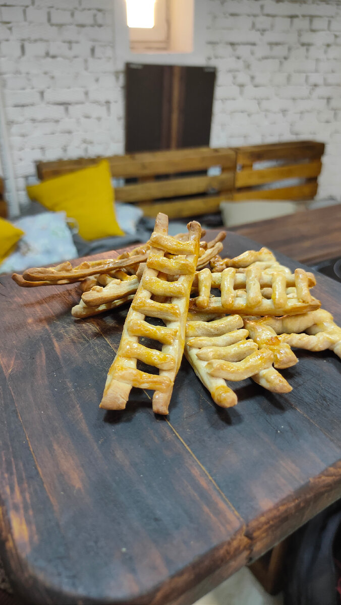 Традиционно лествицы состоят из семи ступенек. После формирования, выложить их на противень с бумагой для выпечки и выпекать в заранее разогретой духовке при 170°C в течение 10 минут.