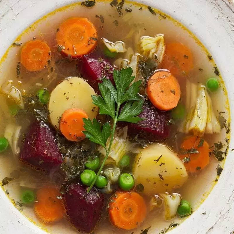 - Обед: горячее блюдо, например, овощной суп, а на второе – бобовые, макароны из твёрдых сортов пшеницы или крупы. Оптимальные методы приготовления – варка, тушение или запекание без масла.