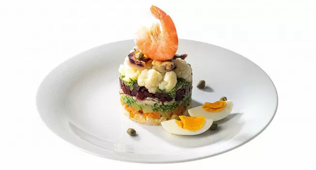 Каппон-магро отличается многообразием и оригинальными сочетаниями. В отличие от привычного оливье с мясом, этот салат содержит рыбу, а также слои свежих и вареных овощей, приправленных зеленым соусом подобно песто. В добавок к этому, интересный внешний вид делает его настоящим украшением стола.
