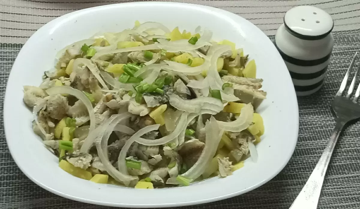 Приготовление вкусного ужина не должно занимать много времени. Познакомьтесь с простым и сытным салатом, в основе которого лежит вареная рыба и картошка. Этот салат можно адаптировать под любые предпочтения — он отлично получается как с навагой, так и с другими видами рыбы. Для любителей острого присутствие перца добавит интересные нотки вкуса.