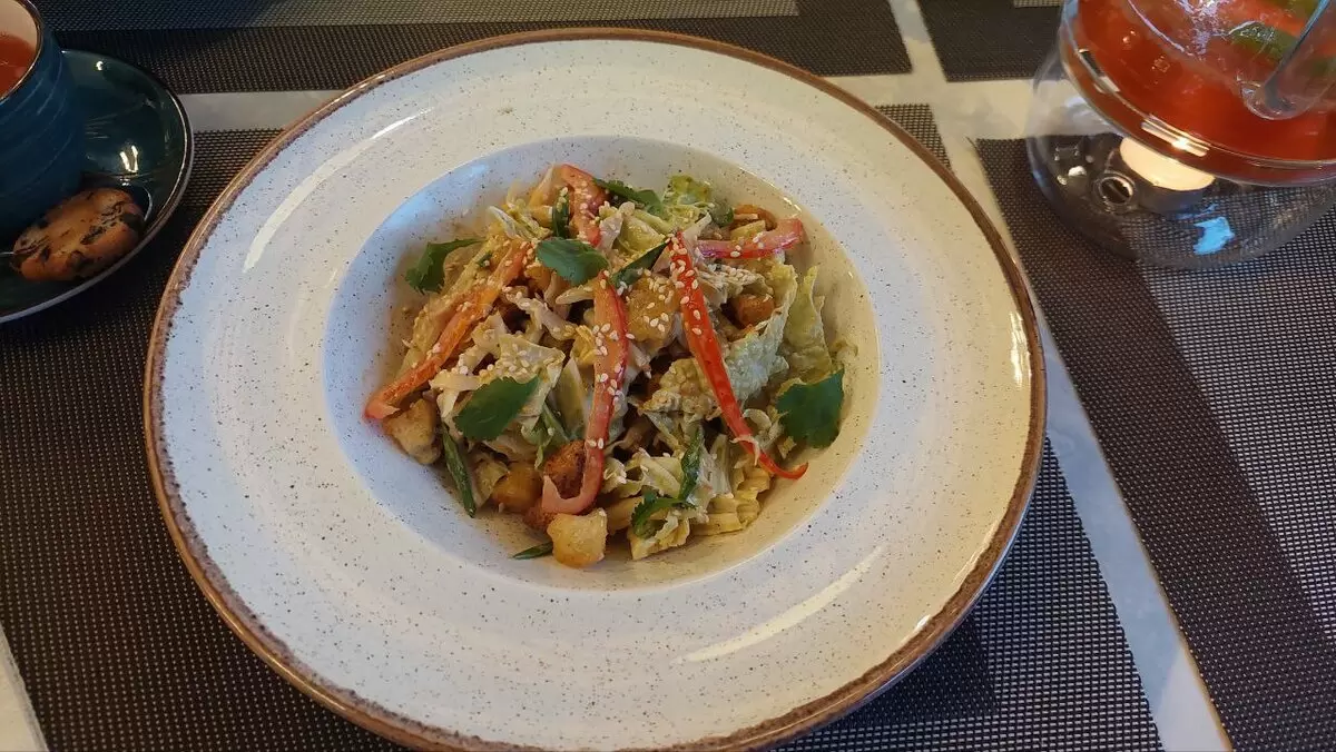 - Салат «Ханойская курочка» – сочный, но сухарики в нем явно лишние.
