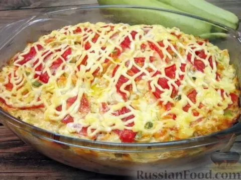 Запеканка из кабачков с куриным филе и помидорами удовлетворит любые гастрономические желания, ведь здесь собраны все необходимые продукты — овощи, мясо и сыр. Это сытное блюдо подойдет как для обеда, так и для ужина.