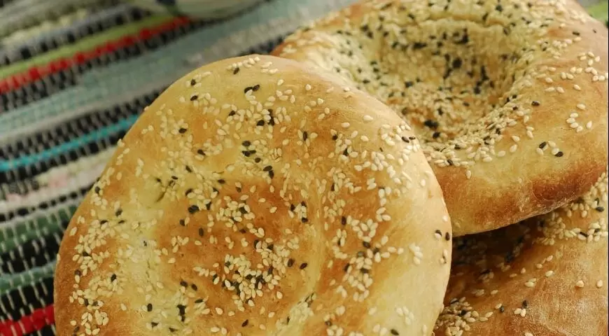 Шаг 5: Разомните каждый шарик в лепешки толщиной около 5 мм в центре и 2 см по краям. Проколоть середину вилкой и посыпьте семенами кунжута.