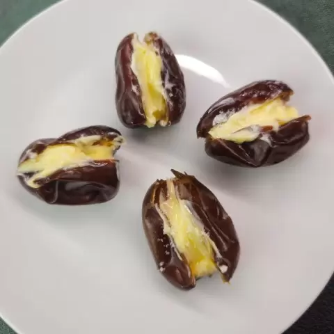 Для приготовления нужны всего лишь мягкие финики сорта "Меджул" без косточек. Внутрь каждого финика помещается небольшой кусочек сливочного масла, а сверху добавляется щепотка морской соли. Вот и всё! Простой десерт готов без лишних усилий, только из натуральных ингредиентов, где сладость фиников, насыщенность масла и легкая соленость создают идеальный баланс.