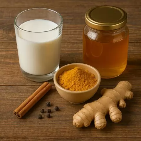 Золотое молоко — это тёплый напиток, приготовленный на основе молока (как животного, так и растительного) с добавлением куркумы и различных специй. В классическом варианте также присутствуют чёрный перец, имбирь и корица, а иногда — кокосовое масло или топлёное масло гхи. Такие ингредиенты не только усиливают усвоение куркумина, но и делают вкус напитка более глубоким и гармоничным.