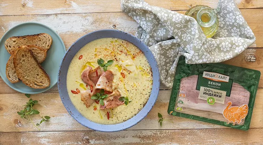 Крем-суп из кабачков является превосходным вариантом легкого блюда для жаркого летнего дня. Чтобы он стал более сытным и не оставлял чувства голода уже через час, стоит добавить в суп немного бекона из индейки. Это сочетание гарантирует идеальный баланс между легкостью и насыщенностью.