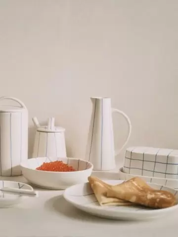 В коллекцию вошло всё, что нужно для создания роскошного стола: глубокие и обеденные тарелки, сервировочные блюда и кружки с оригинальными узорами. Кроме того, набор включает в себя масленку, сахарницу, соусники с блюдцами и даже банку для хранения круп, что делает его идеальным решением для любого застолья.