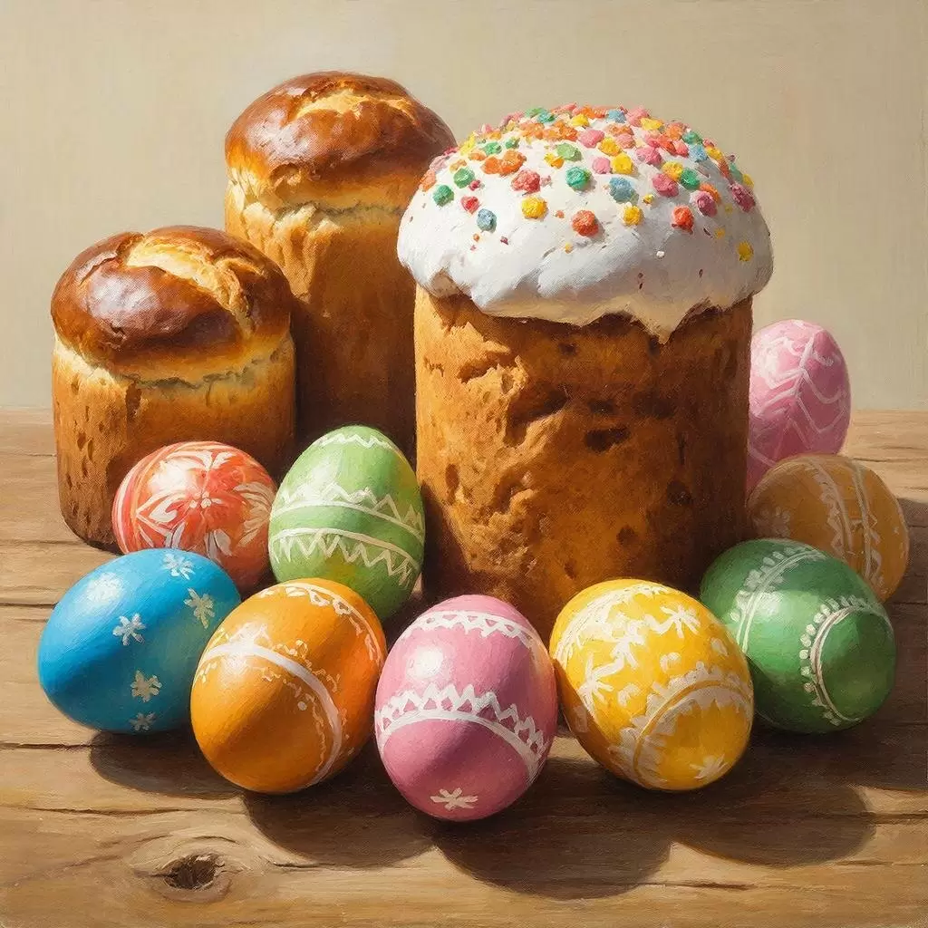 Кулич — это не просто хлеб, а высокое произведение кулинарного искусства, приготовленное из дрожжевого теста с добавлением изюма и цукатов. Он символизирует тело Христа и радость праздника. Обычно куличи выпекают заранее, в Чистый четверг, и освящают в храме в субботу, готовя их к торжеству.