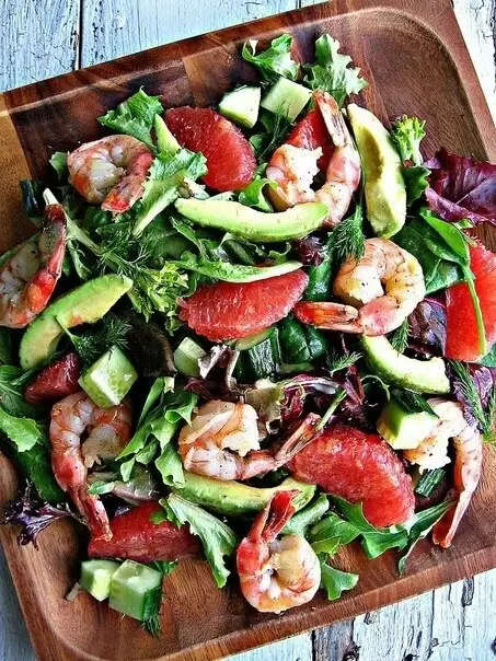 Этот салат станет отличным решением для лёгкого обеда или ужина. В нем идеально сочетаются свежесть овощей и морепродуктов, а яркий вкус грейпфрута добавляет нотку необычности. Приятного аппетита!